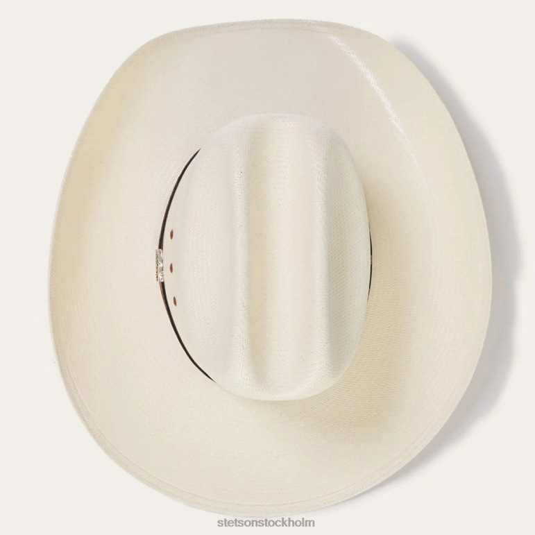 haywood 10x halmcowboyhatten är konstruerad av äkta 10x kvalitetsshantunghalm och har en nötkreaturskrona, öljettventilation och ett garvat och bearbetat hattband i läder. shantung halm. tillverkad i usa.