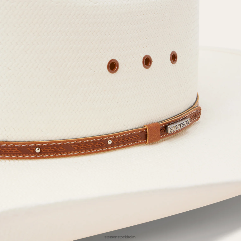 handgjord i usa, stanhope 10x halm cowboyhatt har en 4 1//4" brätte och en 4 1/8" vanlig oval krona med boskapsveck och öljetter för ökad cirkulation och andningsförmåga. dess robusta westernstil förstärks av ett hattband av dubbat läder och ett absorberande dri-lex-svettband garanterar förstklassig svalka och komfort hela dagen lång.