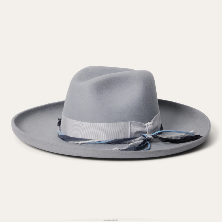 en del av vår stetson seeker-kollektion, oceanus fedora har en 4-tums brätte med rå kant, en 4 1/4-tums krona framtill i mitten och en styv, 100 % ullfiltkonstruktion. den ljusgrå kroppen förstärks av ett hattband i flera lager som inkluderar ett brett grosgrain-band och en dubbel handfärgad sidensnöre. ytterligare detaljer inkluderar en avtagbar fjäderdetalj, stjärnformad hattnål i metall. svettband i konstläder, helsatinfoder och stetson hattbox. stolt tillverkad i usa.