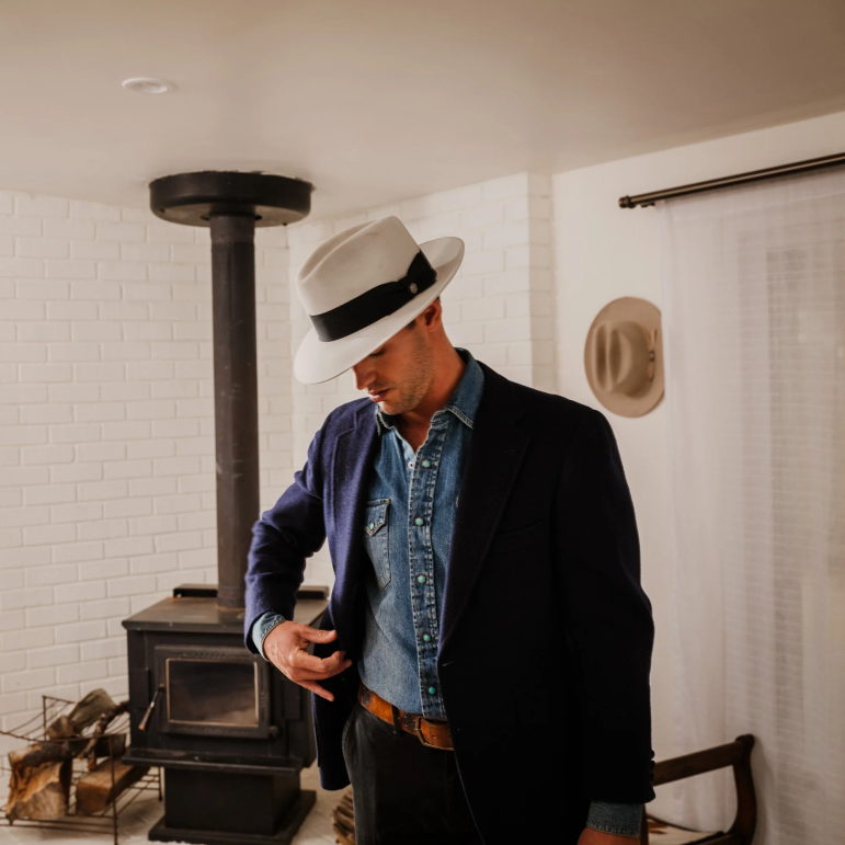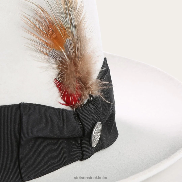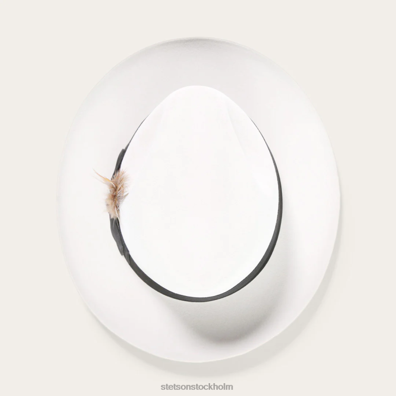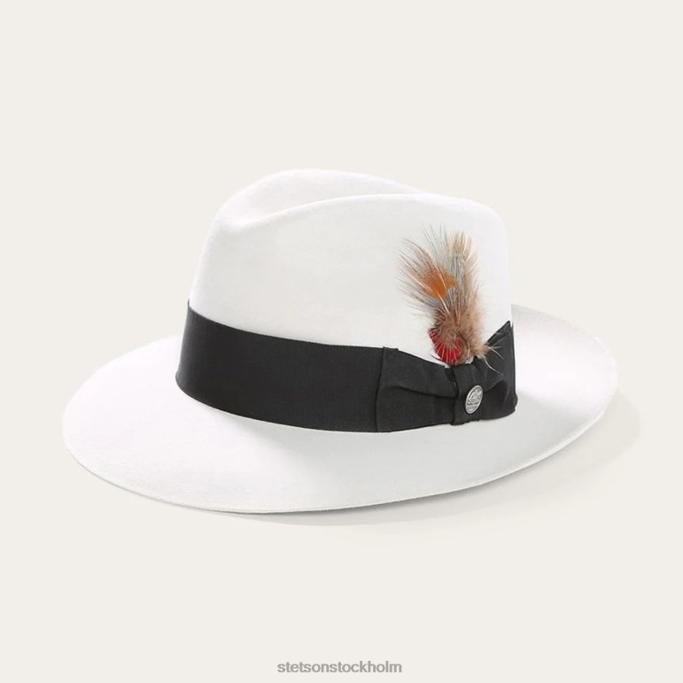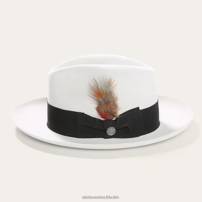 en nick till 1940-talets jazzbarer i new york city. en ikon i sin egen rätt, templet är ett uttalande av distinkt stil. Den är gjord av kvalitetsfilt och har en främre krona i mitten och ett brett hattband med grosgrain-band som är snyggt uppvägd av en djärv fjäderaccent. på interiören avslutar ett svettband av roanläder och satinfoder stämplat med stetson-märket.