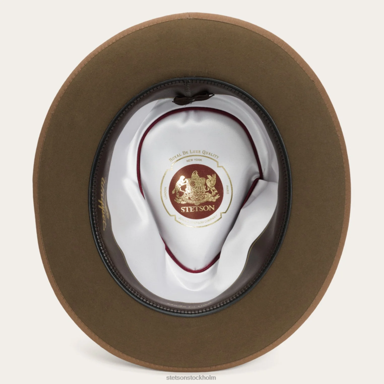 whippet fedora är konstruerad av fast finish, pälsfilt och har en krona med nyp, bunden kantbrätte, invändigt svettband av kohud och grosgrain hattband med fjäderaccent.